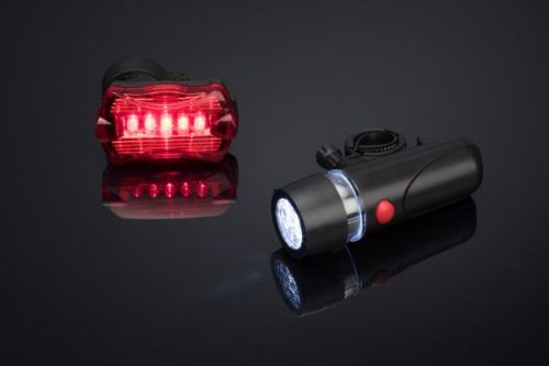 Polkupyörän lamppusarja, jossa on taloudellinen LED-valolähde. Vahva etuvalo ja takavalo, jotka takaavat näkyvyyden useiden satojen metrien etäisyydeltä, saavat sinut ajamaan luotettavasti mihin aikaan tahansa päivästä tai yöstä. Ne on erittäin helppo koota. Etuvalossa on 5 valkoista LEDiä ja 3 valotilaa: yksi jatkuva ja kaksi vilkkuvaa. Takavalossa taas on 5 punaista LEDiä ja 7 valotilaa: yksi jatkuva ja 6 vilkkuvaa. Tuote ei sisällä paristoja.
